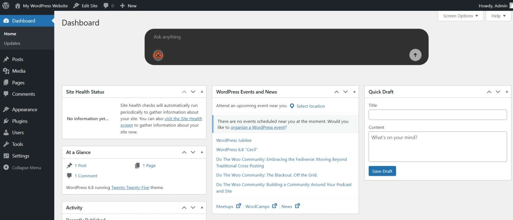A prominent question box appears directly in your WordPress admin area, making it effortless to ask for help, insights, or suggestions whenever you need them.